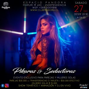 SABADO 27 ,PANDORA CLUB BAR COMIENZA A DECIR ADIOS AL 2025 CON UNA NOCHE SOLO PARA PAREJAS Y MUJERES SOLAS ,UNA NOCHE DE *PIKARAS & SEDUCTORAS * RESERVAS SOLO EN NUESTRO WSP