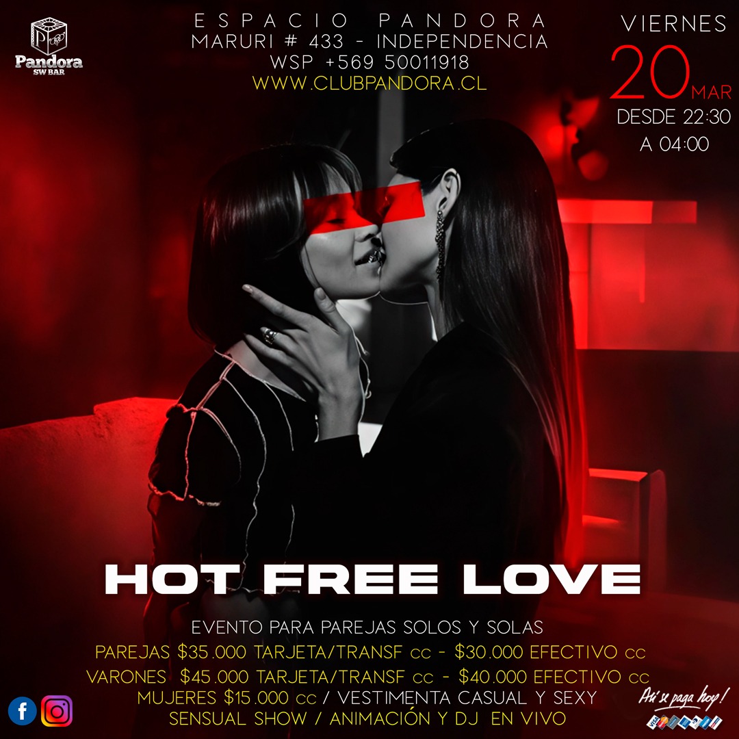 ESTE VIERNES 20 ,TE ESPERAMOS CON UNA ATRAYENTE JORNADA PARA DISFRUTAR Y CONOCER NUEVOS AMIGOS , VEN A VIVIR NUESTRA NOCHE * HOT FREE LOVE* HAZ TU RESERVA SOLO EN NUESTRO WSP +56950011918
