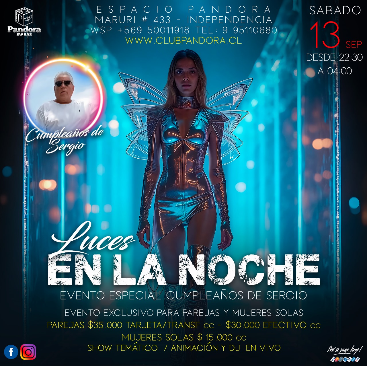 SABADO 13 ,PANDORA CLUB BAR EVENTO ESPECIAL Y EXCLUSIVO PARA PAREJAS Y MUJERES SOLAS * LUCES EN LA NOCHE * NOCHE DE CELEBRACION ,CUMPLEAÑOS DE NUESTRO BIG BOSS SERGIO, HAZ TU RESERVA SOLO EN NUESTRO WSP +56950011918 Y NO TE QUEDES FUERA DE ESTA FIESTA MUY ESPECIAL