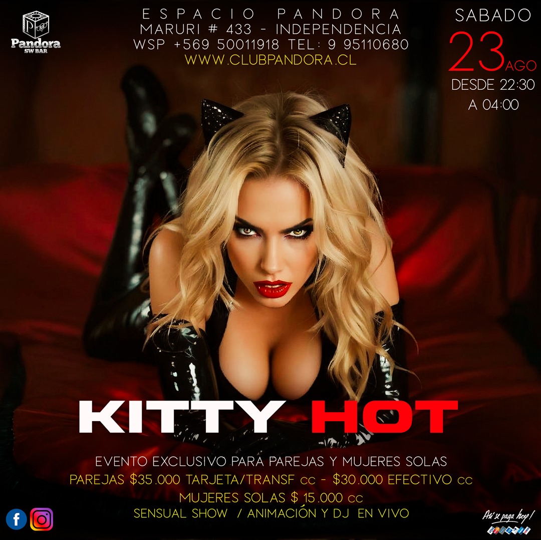 SABADO 23 , EVENTO TEMATICO UNA NOCHE DE * KITTY HOT* SI ERES O QUIERES SER UNA GATITA TRAVIESA O UN GATITO OSADO TE ESPERAMOS , HAZ TU RESERVA SOLO EN NUESTRO WSP +56950011918