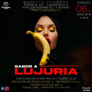 PANDORA CLUB BAR TE ESPERA ESTE SABADO 6 CON NUESTRO EVENTO *SABOR A LUJURIA * EXCLUSIVO PARA PAREJAS Y MUJERES SOLAS , RESERVAS SOLO EN NUESTRO WSP +56950011918
