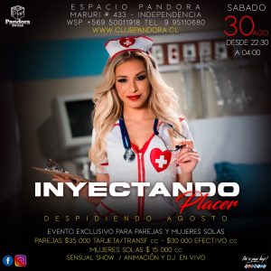 SABADO 30 , DESPEDIMOS AGOSTO *INYECTANDO PLACER*, SEXY NOCHE EXCLUSIVA PARA PAREJES Y MUJERES SOLAS , RESERVAS SOLO EN EL WSP +56950011918