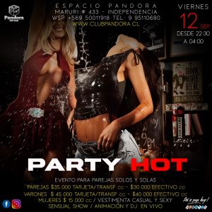 VIERNES 12 .EVENTO ESPECIAL PARA PAREJAS , SOLOS Y SOLAS * PARTY HOT * RESERVAS SOLO EN NUESTRO WSP +56950011918