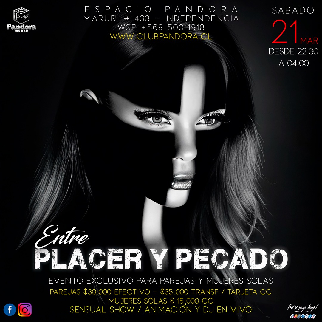 PANDORA CLUB BAR, TE INVITA A NUESTRO EVENTO ESPECIAL PARA PAREJAS , SOLOS Y SOLAS , UNA NOCHE PARA * DEJARTE LLEVAR* HAZ TU RESERVA SOLO EN NUESTRO WSP +56950011918