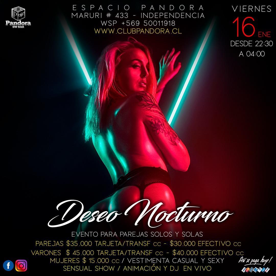 VIERNES 20 PANDORA CLUB BAR TE ESPERA CON UNA * SEDUCCION NOCTURNA * EVENTO PARA PAREJAS , SOLOS Y SOLAS ,HAZ TU RESERVA SOLO A TRAVES DE NUESTRO WSP +56950011918