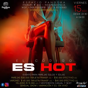 VIERNES 15 , SENSUALIDAD , EROTISMO Y AUDACIA ,EN UNA NOCHE DONDE SABRAS QUE * EL CODIGO ES HOT* HAZ TU RESERVA SOLO A TRAVES DE NUESTRO WSP +56950011918