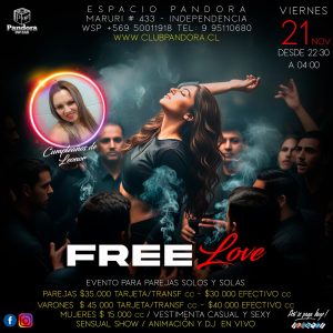 VIERNES 21 EVENTO ESPECIA PARA PAREJAS , SOLOS Y SOLAS ,UNA NOCHE *FREE LOVE* RESERVAS SOLO A TRAVES DE NUESTRO WSP+56950011918
