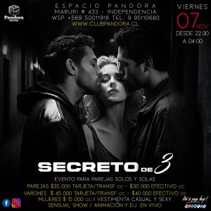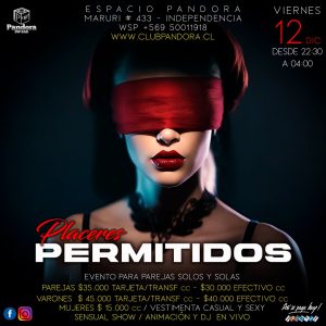 VIERNES 12 PANDORA CLUB BAR TE ESPERA CON UN EVENTO ESPECIAL PARA PAREJAS .SOLOS Y SOLAS ,UNA NOCHE DE * PLACERES PERMITIDOS* RESERVAS SOLO EN NUESTRO WSP +56950011918