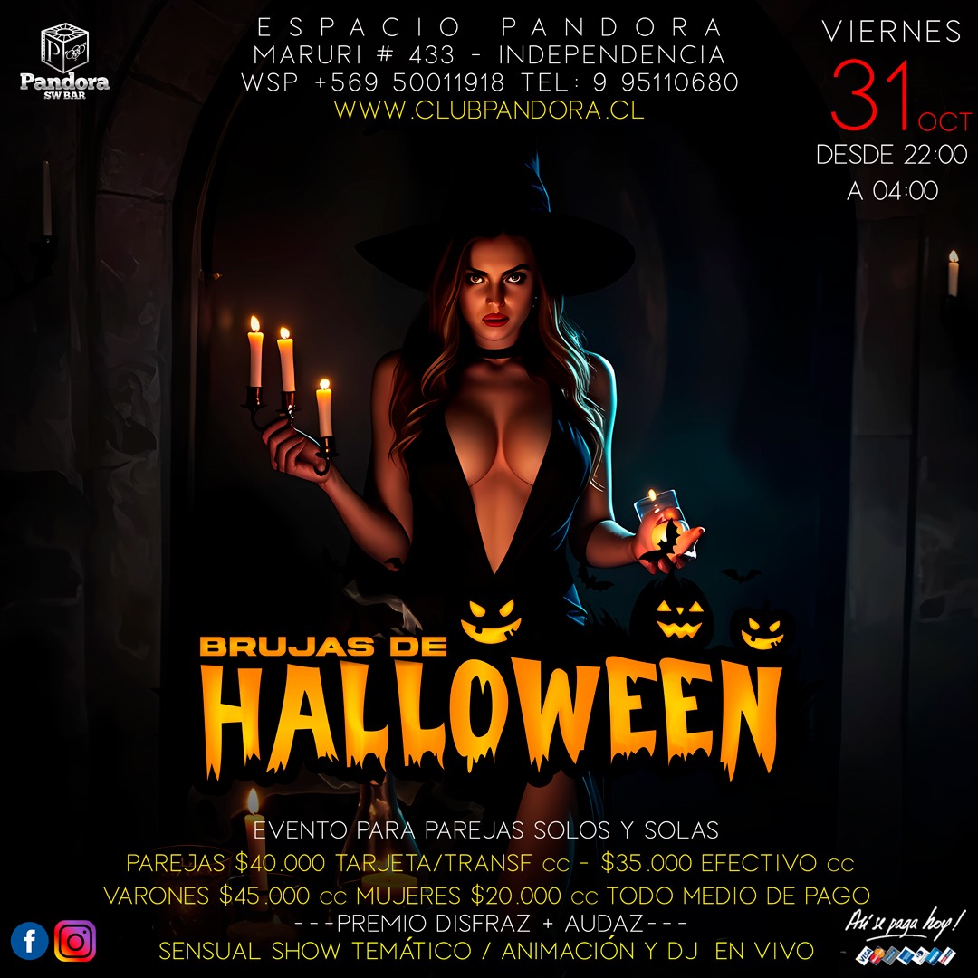 VIERNES 31 , HALLOWEEN SE DISFRUTA EN PANDORA ,EVENTOS PARA PAREJAS ,SOLOS Y SOLAS ,RESERVAS SOLO EN NUESTRO WSP+56950011918